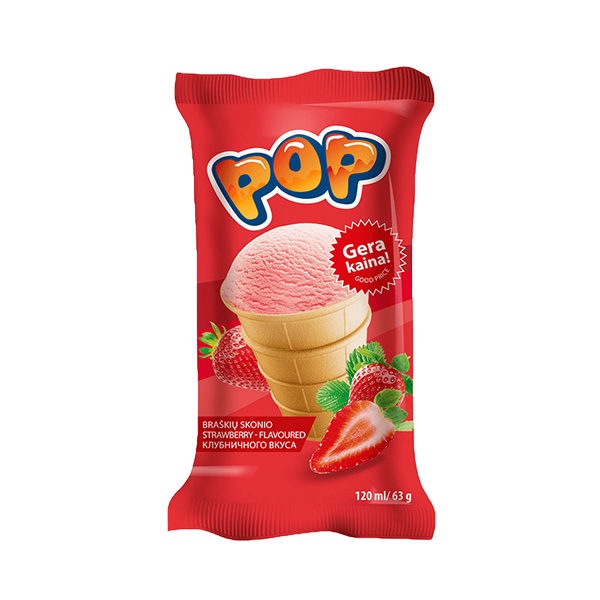 Παγωτό με άρωμα φράουλα σε ποτηράκι βάφλας