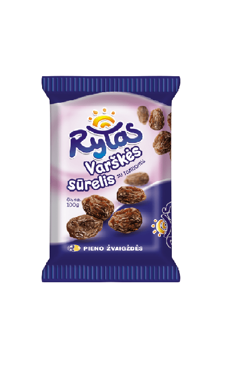 Rytas Сыр с изюмом свежий, 100г. Новый свежий сыр с фруктами – отличное открытие для гурманов, любящих наслаждаться сладкой, вкусной и полезной пищей. Натуральный сливочный свежий сыр, смешанный с кусочками фруктов и ягод, – идеальный выбор для быстрого семейного завтрака. Этот полезный десерт идеально сочетается с хрустящим хлебом и является идеальным дополнением к тортам, блинам или булочкам. Наслаждайтесь вкусными экспериментами и открытиями!