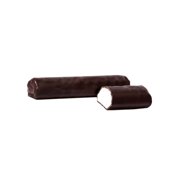 Zephyr with vanilla flavor covered with dark confectionery coating